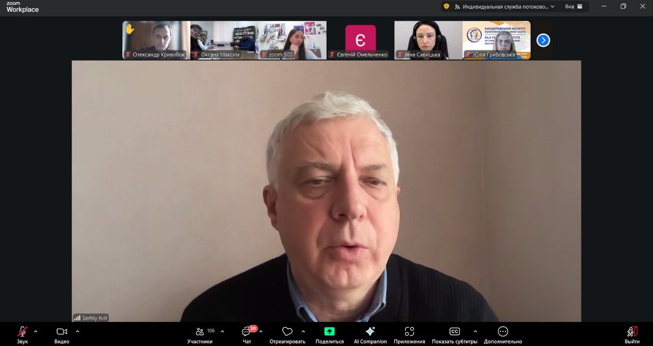 лекція «Доброчесність як кар’єрна стратегія: як знайти свою справу й залишатися стійким у складних системах», спікер – Сергій Квіт, доктор філологічних наук, професор, президент Національного університету «Києво-Могилянської академії».